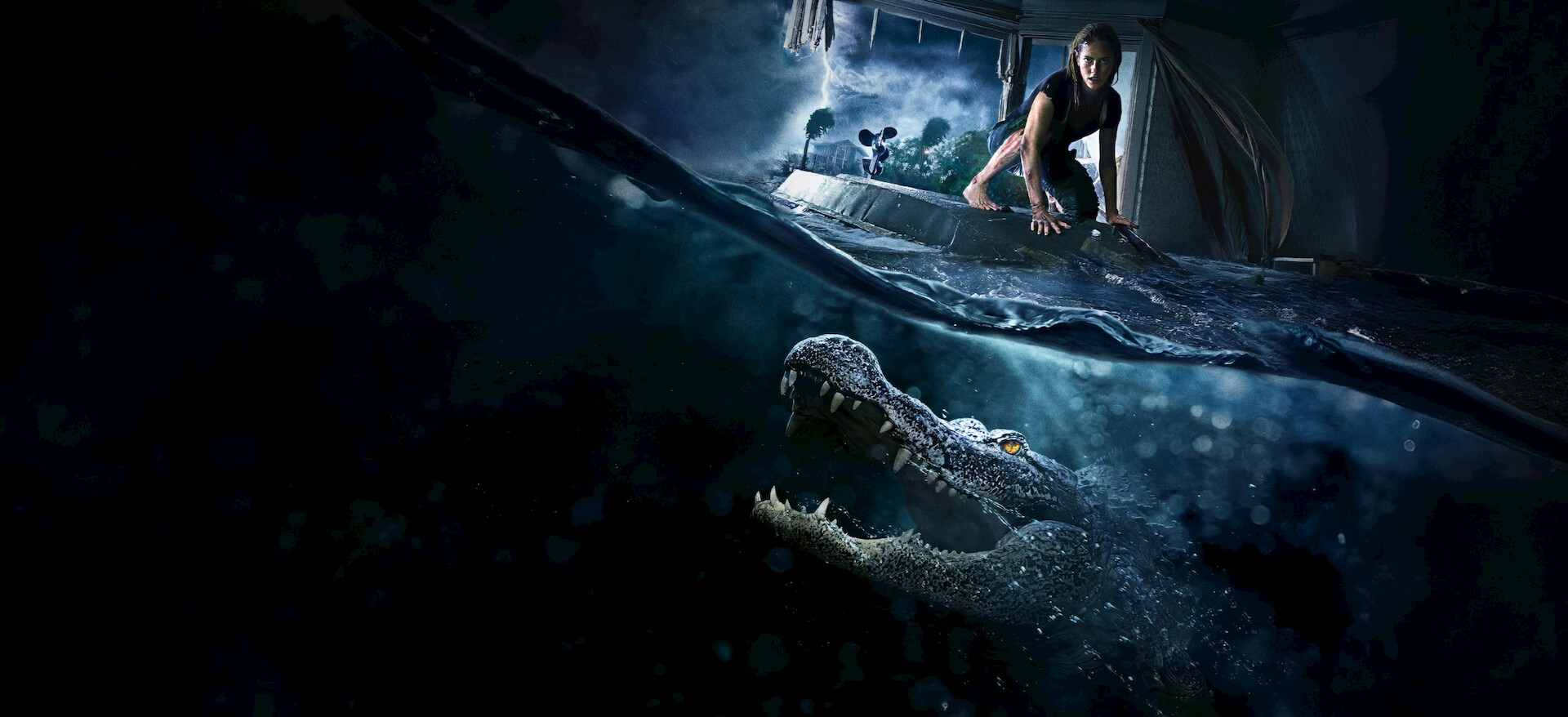 飓风来袭,一个女人试图于救出自己的父亲,却被困在了家里被淹的一片只够爬行的空间里,而致命威胁正在水中虎视眈眈。