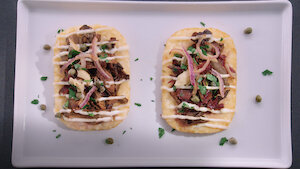 Los aperitivos del partido se transforman en platos que ganan puntos con los jueces. Los candidatos deben reimaginar carnes a la parrilla y convertirlas en un festín.