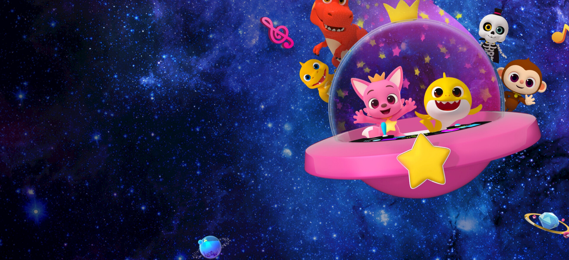 En compañía de nuevos amigos de otros planetas, Pinkfong y Tiburón Bebé exploran el espacio exterior y buscan partes perdidas de una estrella para poder regresar a casa.