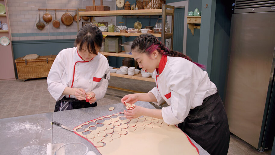 Six teams kick off a new round of competition with miniature Jaffa cakes and tartes Piémontaise, followed by strawberry-and-cream-themed centerpieces.